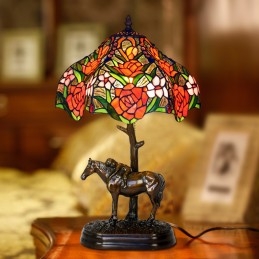 Lampada da tavolo in vetro colorato rosa Tiffany da 30 cm