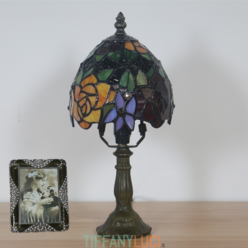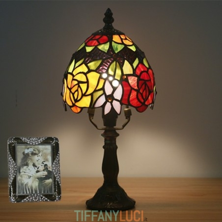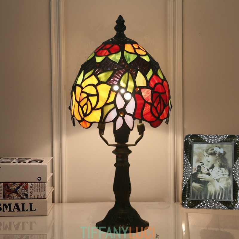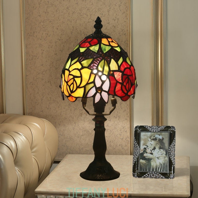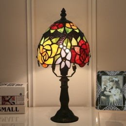 Lampada da tavolo Tiffany stile rosa in vetro colorato europeo da 15 cm