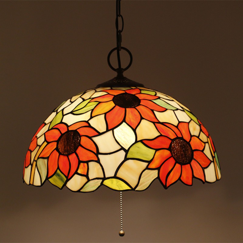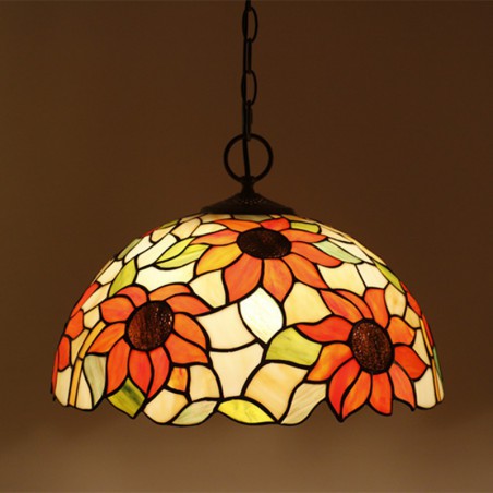 Lampada a sospensione Tiffany in vetro colorato europeo da 40 cm con girasole
