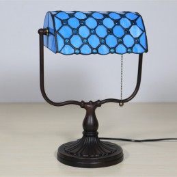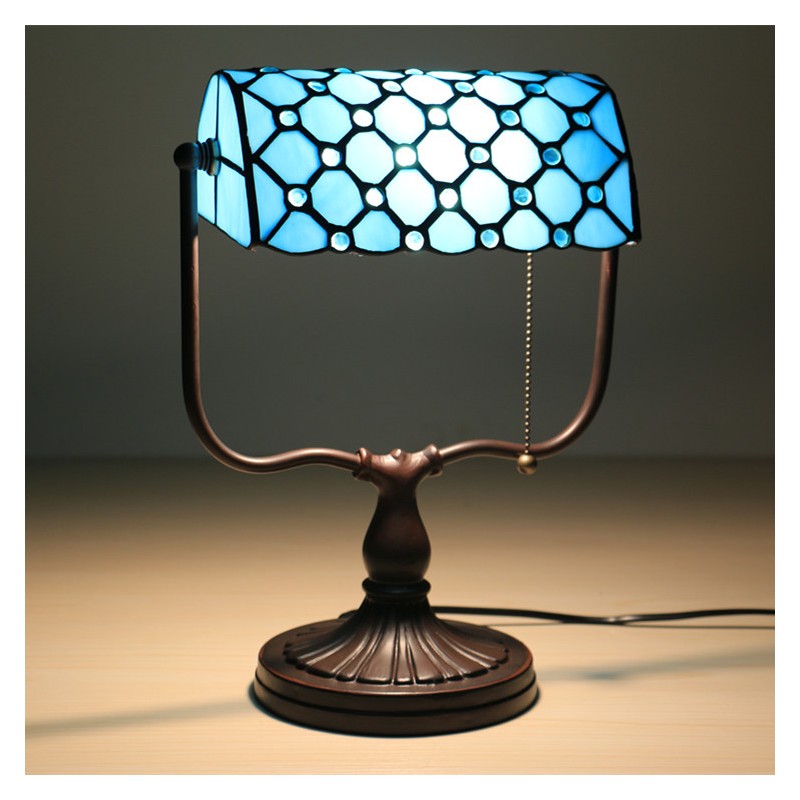Lampada da tavolo Tiffany Bank in vetro colorato europeo blu in stile barocco